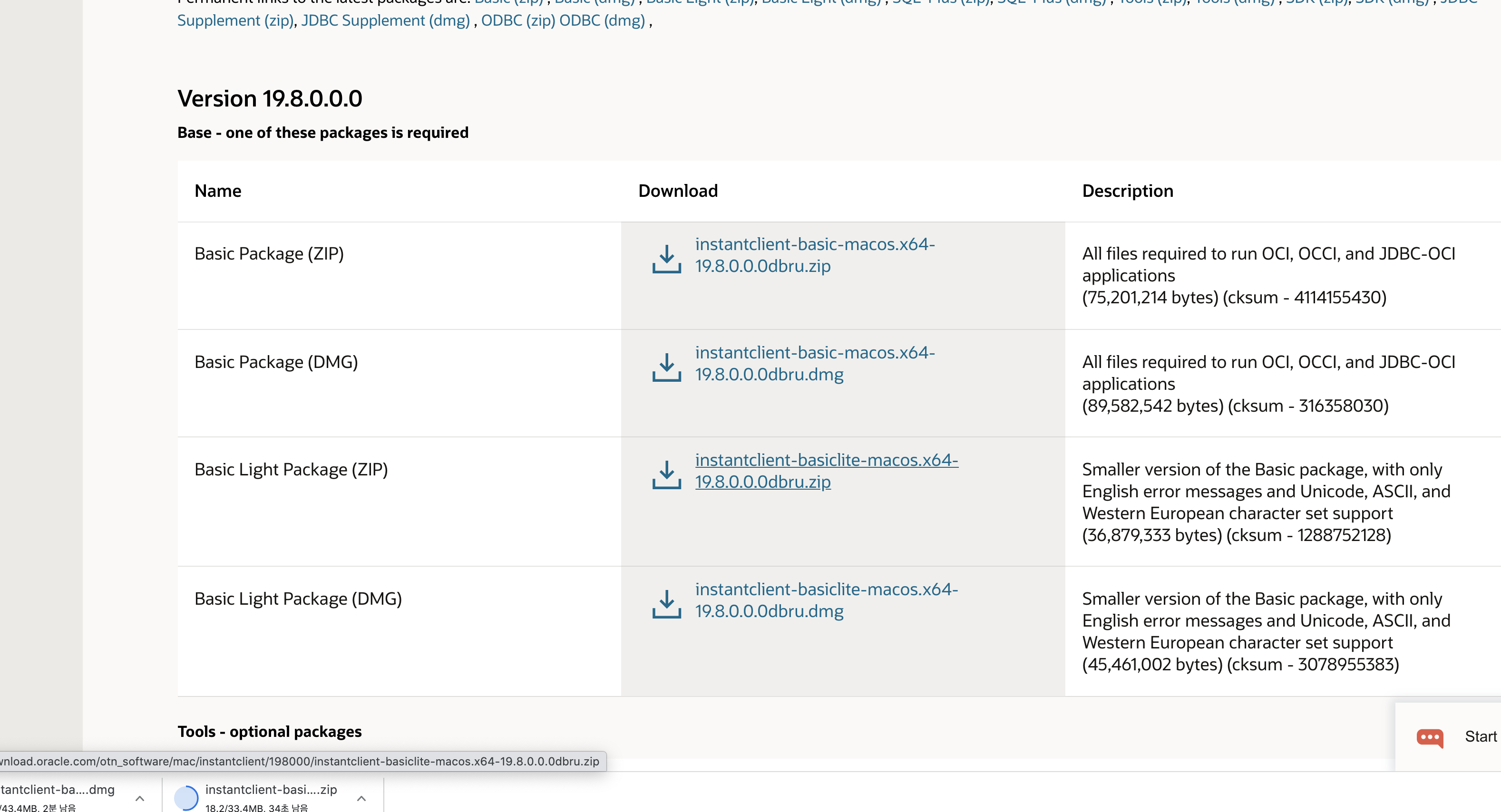 Using existing dir: /Users/lambda256/Downloads/instantclient_19_8...