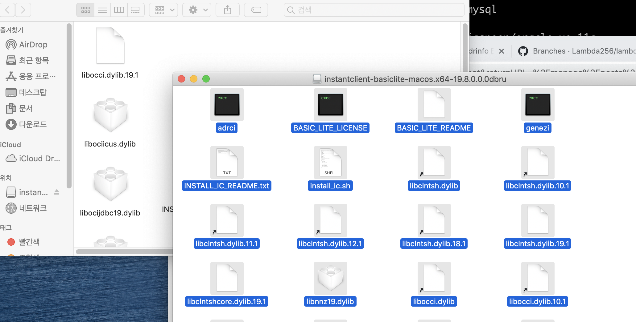 위 명령어를 실행하면 여태까지 마운트된 인스턴트 client.dmg 패키지를 /User/$USER/Downloads/instantclient_19_8로 복사시켜 준다고 한다.
