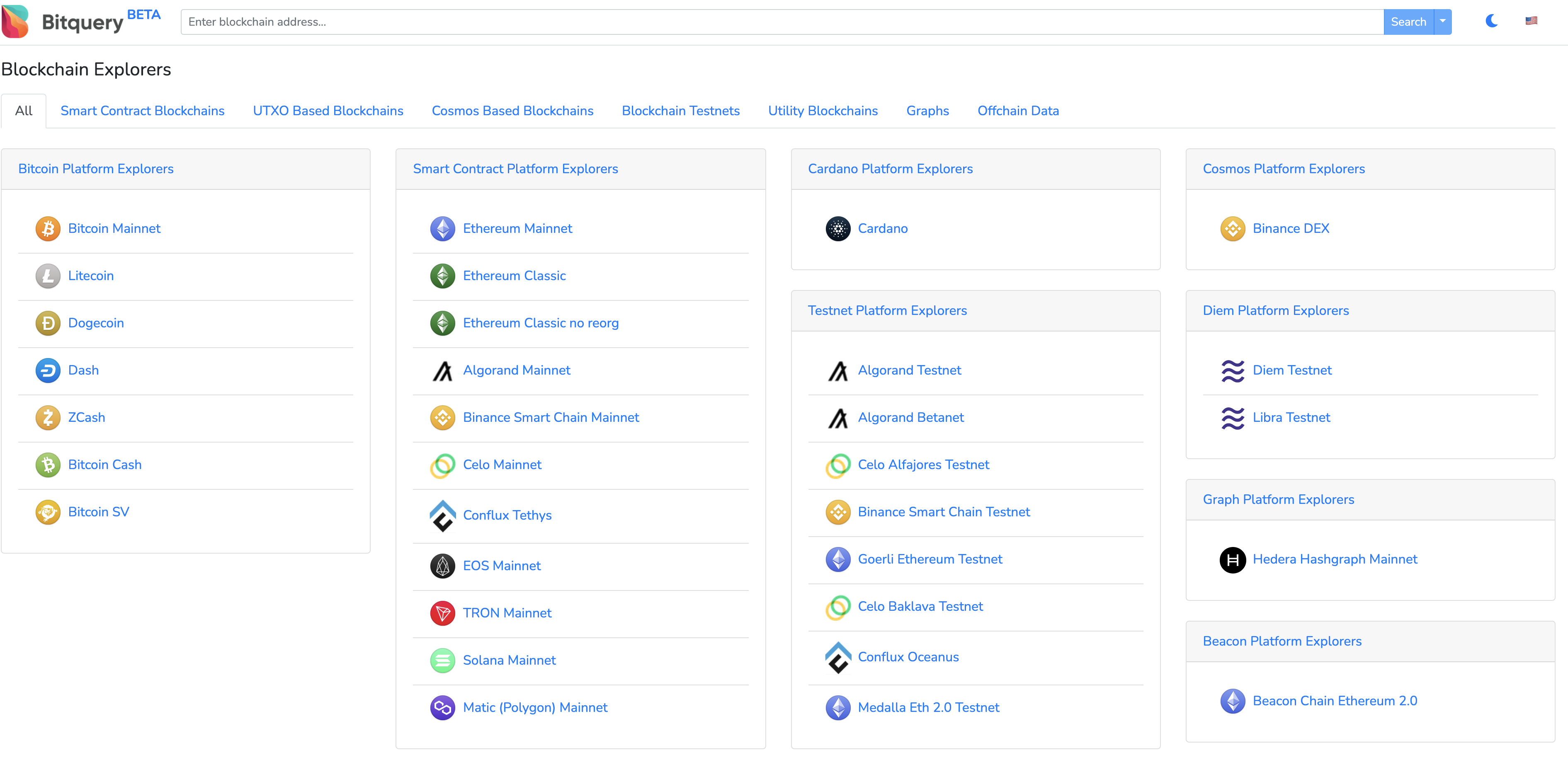 Track Blockchain transaction for 20+ blockchains, check Bitcoin explorer, Ethereum explorer and other blockchain explorers by Bitquery