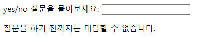 answer: '질문을 하기 전까지는 대답할 수 없습니다.'