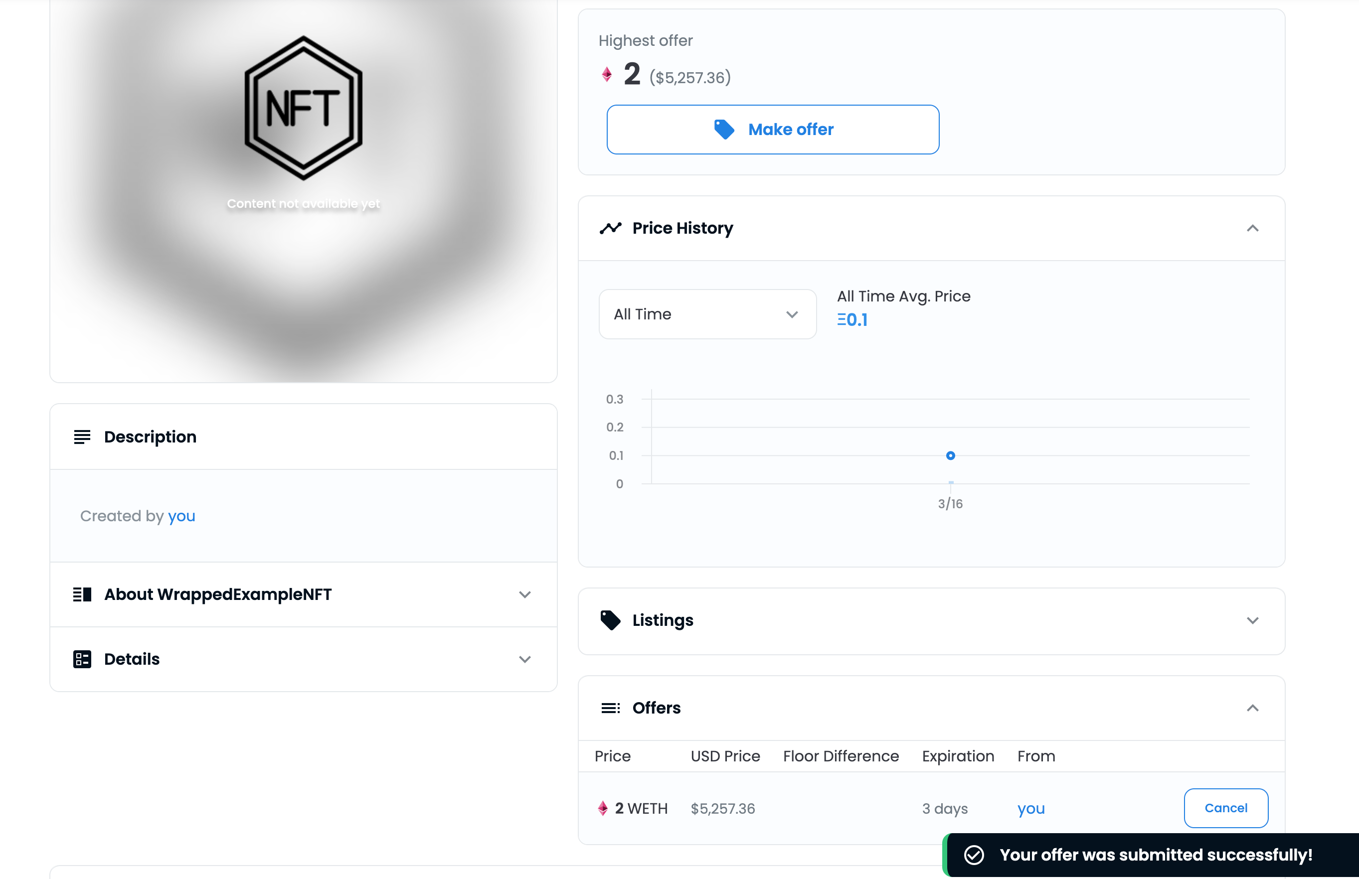 2 이더로 오퍼 등록됨