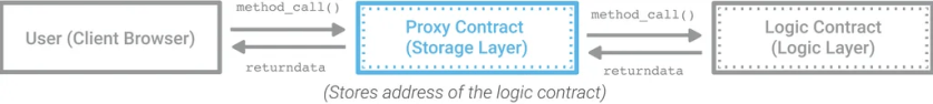 먼저 프록시 패턴의 경우 프록시 컨트렉트에 스토리지 데이터를 저장하고 연결된 로직 부분에 대한 컨트렉트는 계속해서 바꿀 수 있게 만든 배포 구조이다.