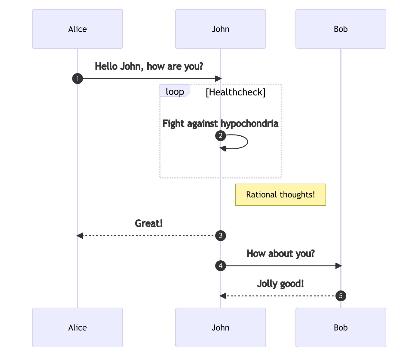 John->>John: Fight against hypochondria