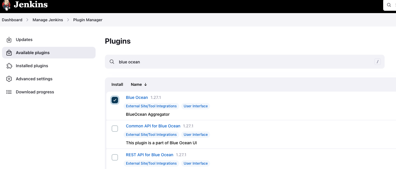 다음으로 blue ocean 설치!