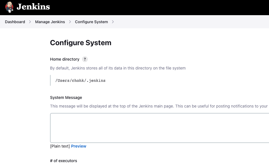 대시보드 > jenikns관리 > Configure System 경로로 들어가기