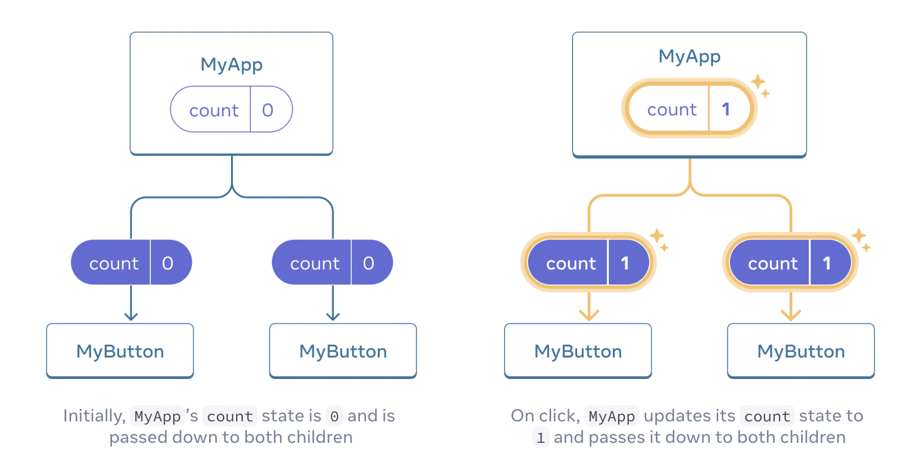 그 결과 나오는 위의 코드가 state up 된 형태여서 이제 이런 식으로 하게 되면 상태 변수를 동시에 관리 시킬 수 가 있다고한다.