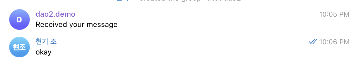 여기서는 Msg안에 chat ID가 있기 때문에 여기서 chatID를 가져와서 다시 응답 값을 보내주고 있는데 이에 따라서 해당 메세지를 보낸 채팅방에다가 다시 응답을 보내 줄 수 있다.