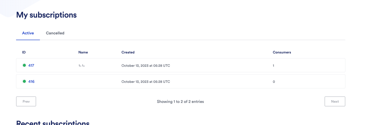 구독이 되면 이런식으로 LINK를 예치하고 consume이 가능한 계정으로 등록이 된다.