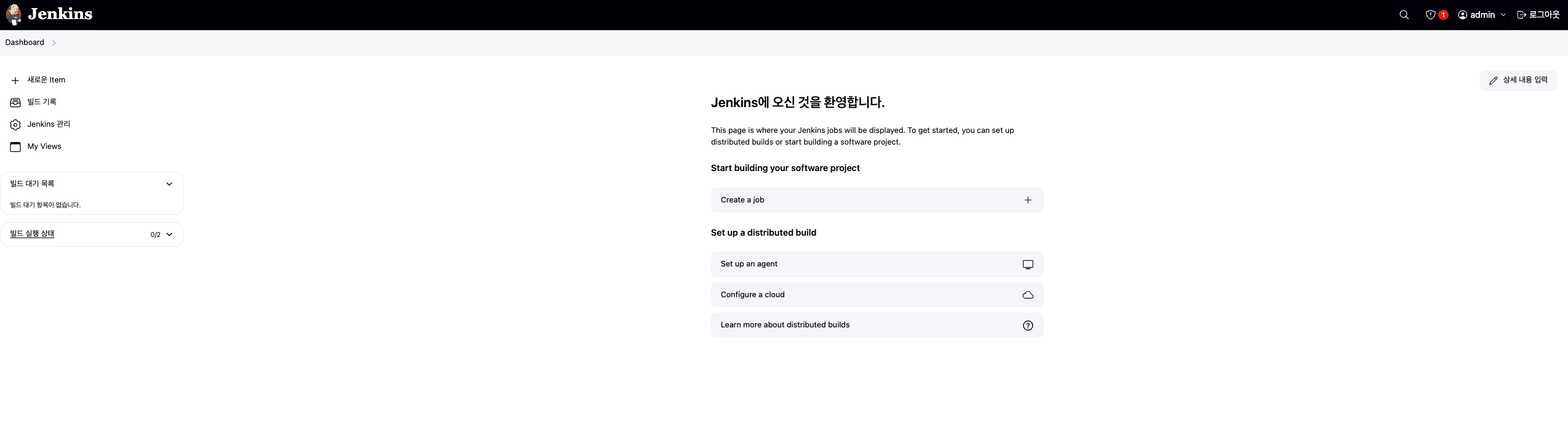 이후, admin, id 설정 후 로그인