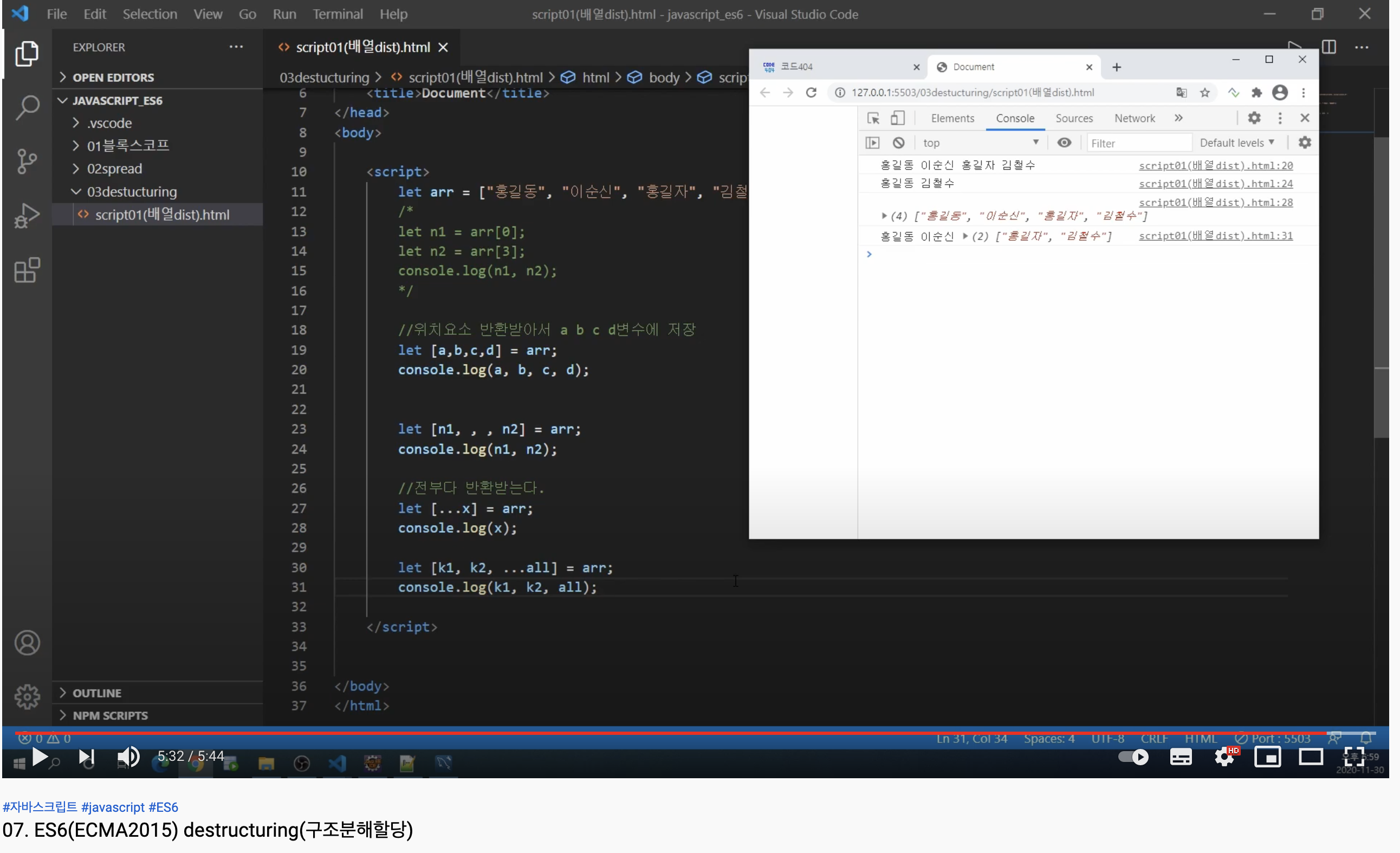 위와 같이 배열이나 object의 위치를 기준으로 할당하는 것이 구조 분해 할당.